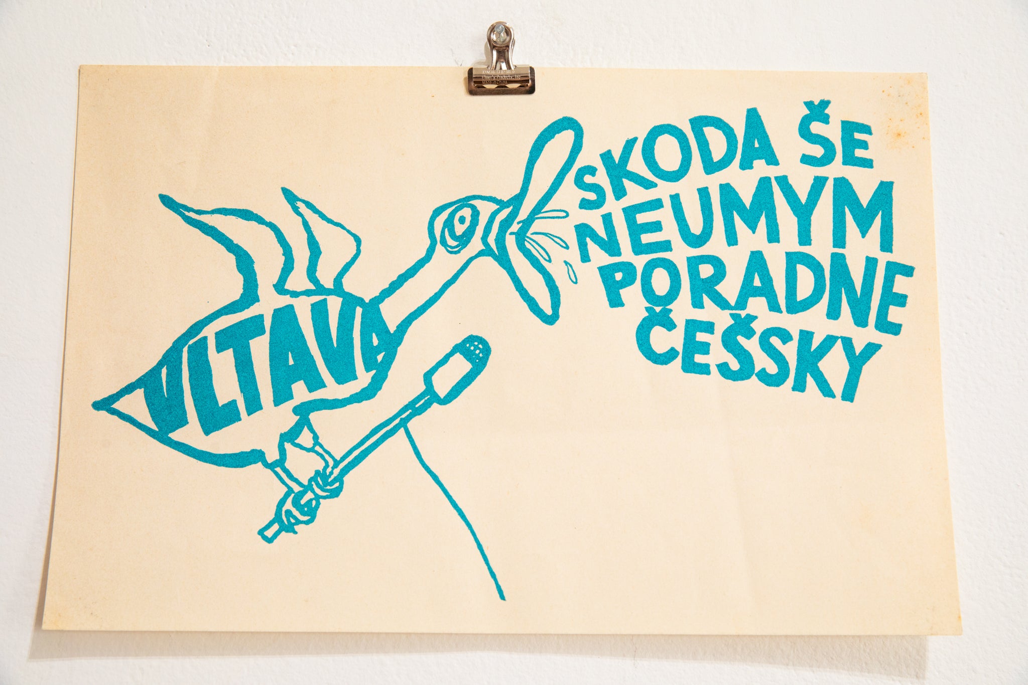 Notes: translation "VLTAVA / SKODA I STILL CAN'T WASH CZECH ADVICE." Anti-Soviet Czech propaganda poster mentioning environmental damage done to the Vltava River by the Soviets during the Prague Spring.
